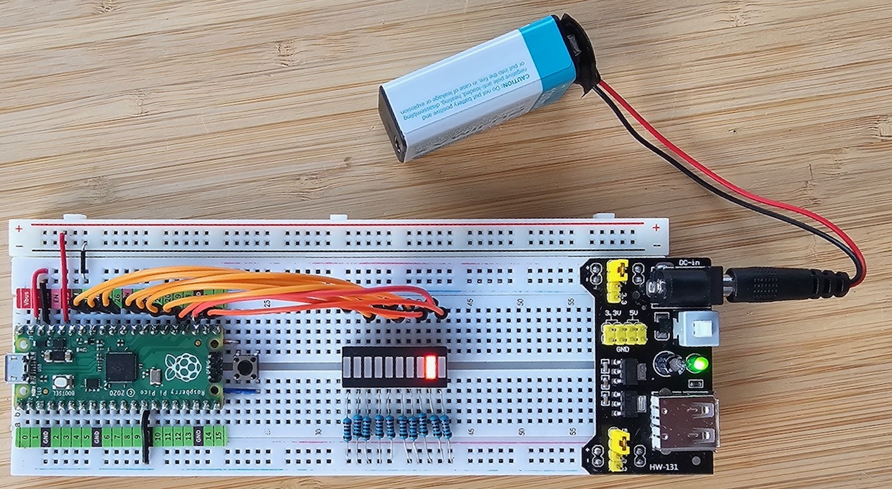 The original C code uses a simple array of int containing the GPIO pin numbers for the ten LEDs. Note that the