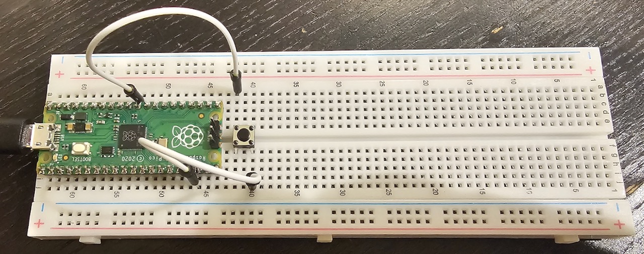 That’s it. No pull-up resistor, no fancy circuitry — the RP2040 already has an internal pull-up on the RUN pin.